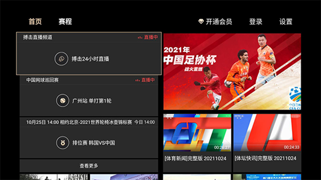 央视体育VIP电视版是一款权威的看球赛软件,是中央电视台 CCTV 旗下新媒体机构央视网为中国体育迷们重磅推出的高清互动体育内容平台,央视体育VIP适用于安卓手机和平板,而这个央视体育VIP TV客户端适用于智能电视和盒子。它可以观看所有热门体育比赛的高清直播、赛事录像和集锦花絮,另外在赛程中还可以看到CBA、德甲、法甲、欧国联、羽毛球、网球、全运会、中超、美洲杯、排球、乒乓球、冰雪运动、搏击等各大赛事直播,不仅可以回看之前的赛事直播还可以抢先知道接下来比赛对战。