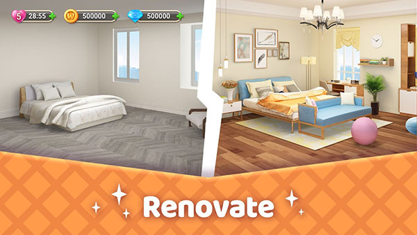 《家庭改造》是一款结合三消玩法和家居设计的休闲手游,玩家通过消除方块赚取资金,然后用这些钱来装饰自己的家。游戏里有各种风格的房间和家具可以选择,从现代到乡村风应有尽有。每次完成关卡还能解锁更多奖励,比如金币和钻石,用来购买更多装饰品。