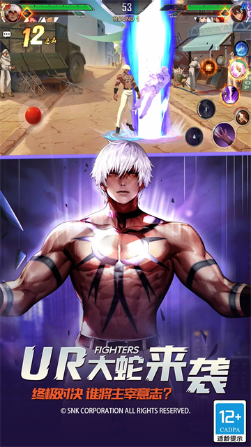 拳皇命运正版手游是由腾讯游戏代理的大型热血街机格斗游戏,已经获得SNK正版授权,拥有童年游戏的所有拳皇人物角色,包括草薙京、八神庵、不知火舞、吉斯、高尼茨、二阶堂红丸、镇元斋等等,让玩家充分的融入时光的游戏中,格斗巅峰大作正版延续,SNK全程监制,游戏再现风靡全球的超爽格斗。世界综合格斗大赛KOF召开全世界的格斗高手集聚南镇,所有的队伍,抱着各自的目的进行战斗,正义与邪恶的对决一触即发。横版动作格斗类的游戏,意味着玩家依旧可以像当年操作游戏一样的玩,合理的预判与走位、精准的技能释放、惊艳的技能组合,呈现真实打的击感,拳魂不灭,热血再燃,闯南镇、战吉斯、斗卢卡尔、对决大蛇,游戏再现完整剧情。同时游戏还有,最新的玩法,100%KOF公平决斗、创新3V3推塔PK,车战、空战、街头战,与人气格斗家并肩,4个阵营,地界守护、武道联盟、极恶军团、天国神族玩家可以随意选择人物阵营,快来下载体验,共同谱写拳皇的命运吧。