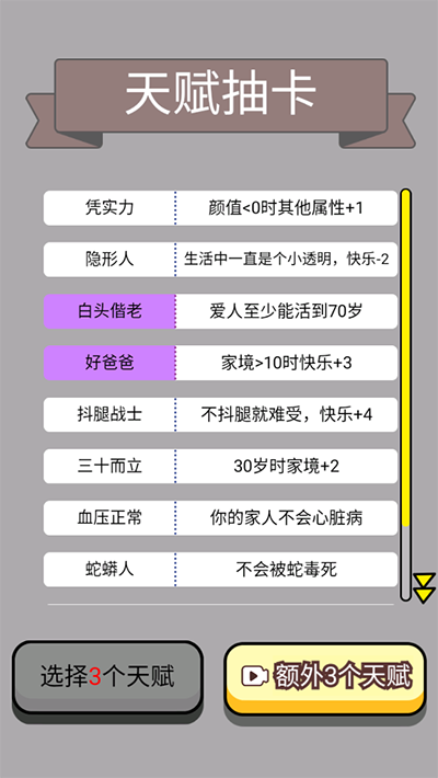 2、再从10个抽到的天赋里,选择3个开局,同样也可以选择增加更多的天赋;