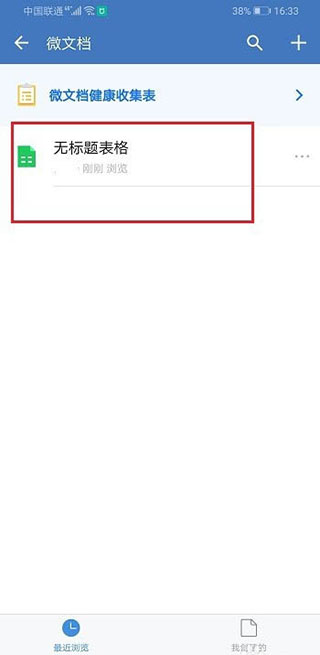 5、返回微文档界面之后,可以看到已经新建表格了,如下图所示: