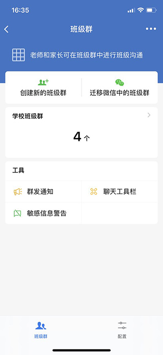 学校可统一管理班级群,设置敏感信息警告规则、仅家校通讯录家长可进群、禁止改群名等,家校沟通更安全。