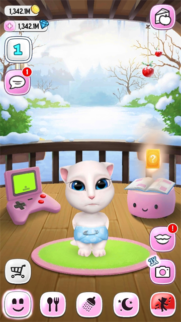 游戏中安吉拉有四大养成需求:首先是玩耍。你可以轻轻滑动屏幕,抚摸安吉拉,它会发出咕噜咕噜的舒服声,这代表它很享受哦~当然你也可以直接点击它,给它一个小小的惩罚~
