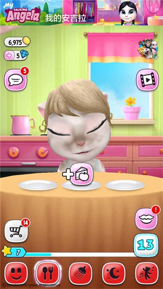 然后是饮食了。在餐厅里你可以拖动食物到安吉拉嘴边喂给它吃。当然,你更可以去商店给它买更多好吃哒!