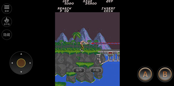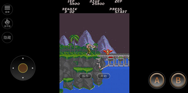 1、首先打开魂斗罗,点击投币,再点击开始游戏;