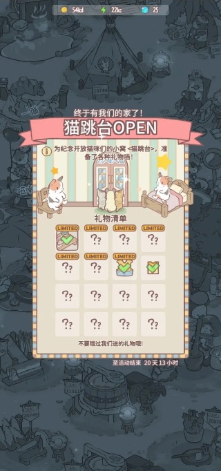 点击送你礼物的猫咪,有概率获得新衣服,新宠物和新的猫跳台家具,不过请注意截止日期