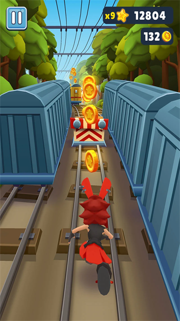 地铁跑酷是一款超级好玩的手机游戏,玩家扮演的角色在铁轨上飞速穿梭,躲避管理员和他养的狗的追赶。游戏画面漂亮,操作也很流畅,跳跃翻滚动作反应很快,特别刺激!游戏里有各种道具,比如磁铁吸金币、跑鞋加速、滑板保命等等,还能用火箭飞行超远距离,体验感很强。
