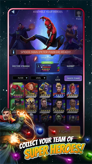4、可以释放相对应的人物技能,不同的搭配能打出不同的游玩体验,在消除玩法上,增加了收集角色和卡牌的新颖玩法,让漫威迷们对这款游戏起到非常大的兴趣。