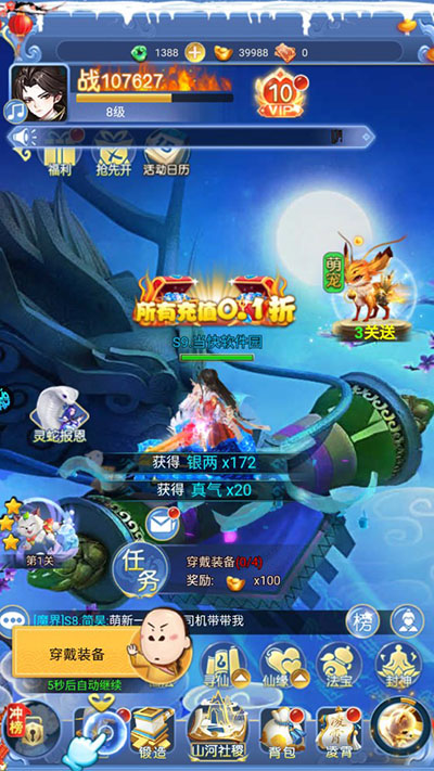 除了精彩的战斗体验,其中还提供了许多其他有趣的玩法。你可以参与Q宠乱斗,与可爱的宠物一起展开激烈的对战;还可以选择萌妹护驾,与她们一同踏上冒险之旅。此外,游戏还提供了个性时装和百种法宝与技能,让你可以根据自己的喜好进行自由搭配,打造出独一无二的角色形象。请无论是战斗还是探索,都能让你沉浸其中,享受到无尽的乐趣,快来加入我们吧,开启一段属于你的仙侠传奇!