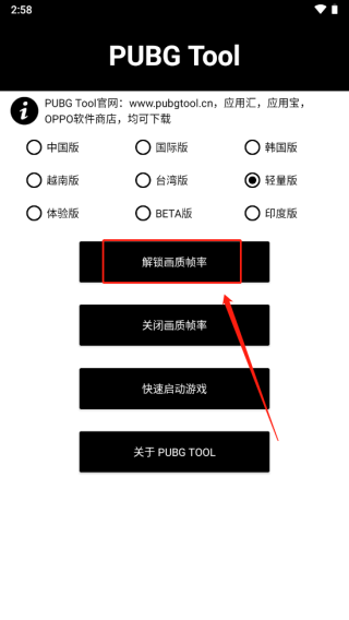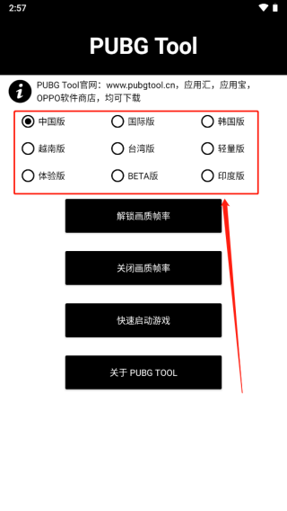1、进入绝地求生画质助手,选择自己手机上对应的游戏版本