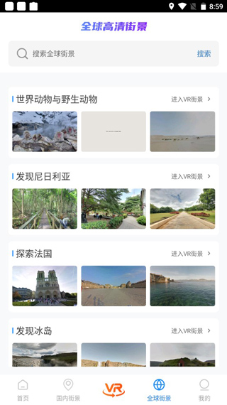 3、在这里拥有3D视觉效果,还有VR观看功能,实时了解不同国家城市农村街景图。
