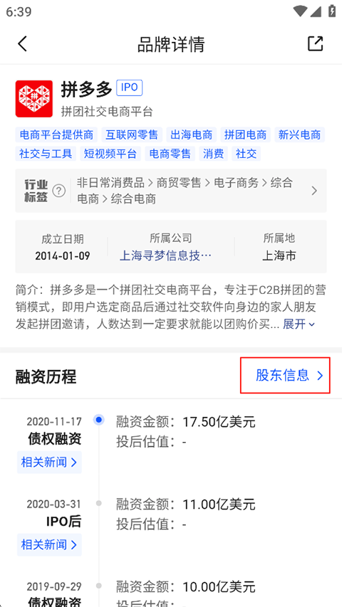 2、在搜索栏搜索您需要查询的企业公司,以拼多多为例;