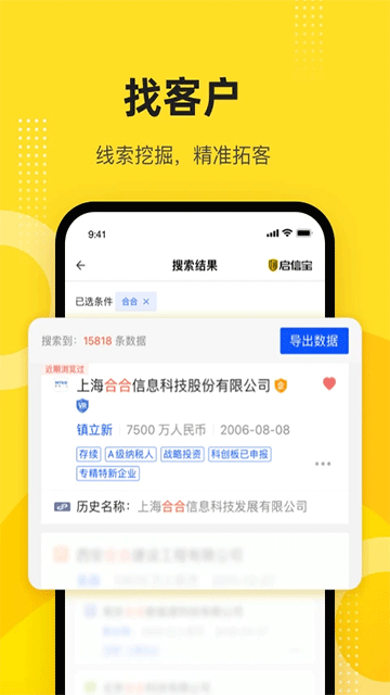 启信宝数据库含境内3.1亿家企业等组织机构,多维度企业信息快速查询,支持自定义搜索、模糊搜索,精确找到企业级客户;