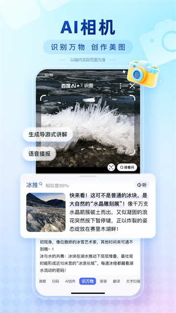 系统搭载文心一言大模型底层,可深度、精准理解你的意图, 从搜索到内容推荐,从语音交互到图像识别,百度App为你带来全方位的AI体验
