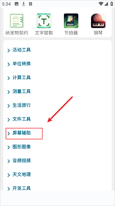 1、进入实用百宝工具箱最新版后点击下方的屏幕辅助。