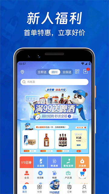 1919酒类直供官方APP是1919酒类平台科技股份有限公司打造的一款垂直酒类电商平台,专注于构建"订酒+订餐+订服务"的宴请生态体系。平台依托全国"零售+店配"网络,精选白酒、葡萄酒、洋酒、啤酒等全品类酒水,提供19分钟极速配送服务,满足婚宴、节庆、商务等多元化用酒需求。