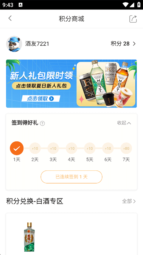 1、1919酒类直供官方APP的积分获取方式主要有四种:其一就是通过每日签到获取积分;