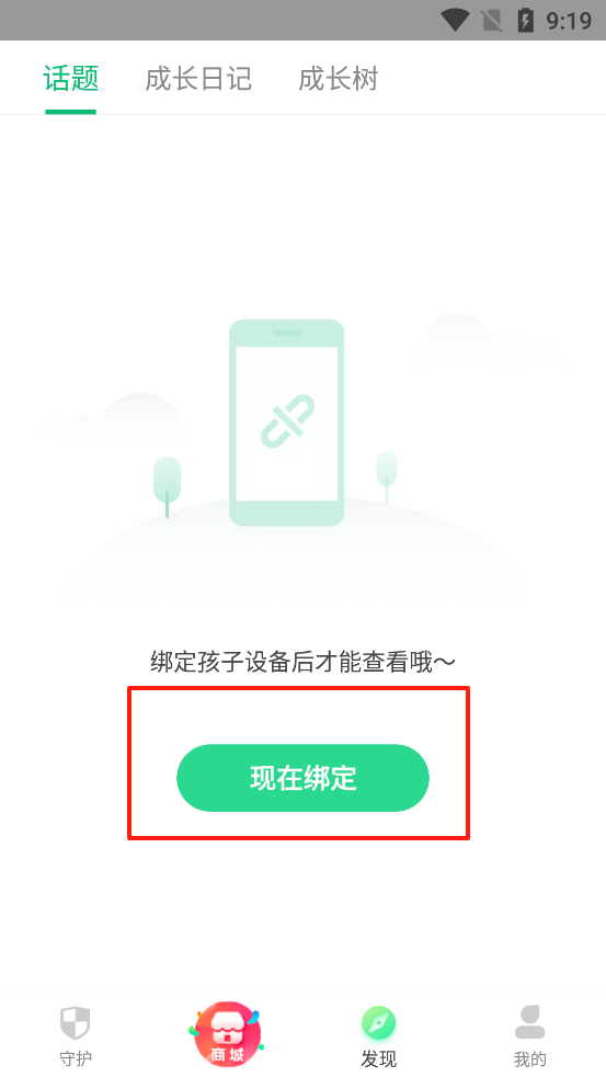 1、打开青葱守护家长端App,点击绑定设备
