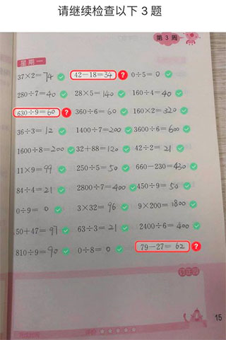 1、作业检查:手机拍摄小学作业,一秒完成检查。