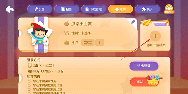 3、添加二宝档案需购买启蒙+小学超值组合包才能解锁。