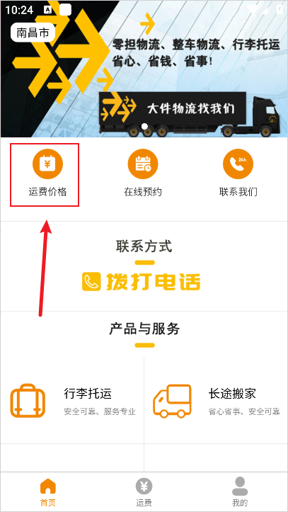 1、下载进入软件,在首页点击运费价格