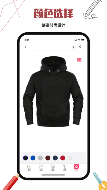 软件还支持作品导出和线上分享功能,满足用户的多样化需求。操作流程也很简单:进入软件后点击“开始设计”,然后根据喜好自由创作,完成后还可以分享给好友。此外,App提供多种衣服搭配元素、自定义调色板、面料质地等高级功能,用户可以用手指或手写笔轻松完成设计。