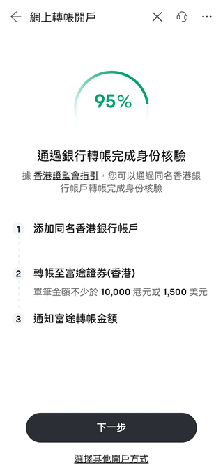 网上转账开户,足不出户即可完成,需本人香港银行帐户转账10,000港元或1,500美元。