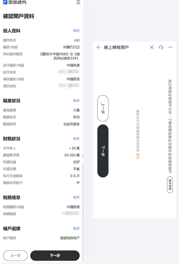 根据页面提示填写您的职业状况、财务状况、投资经验信息。