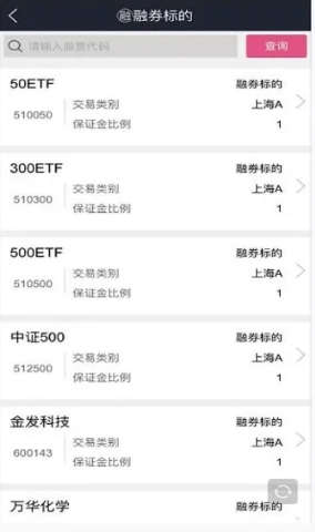【融资融券】-【融券标的】可查询东海证券支持融券卖出的标的证券以及每只证券的融券保证金比例。
