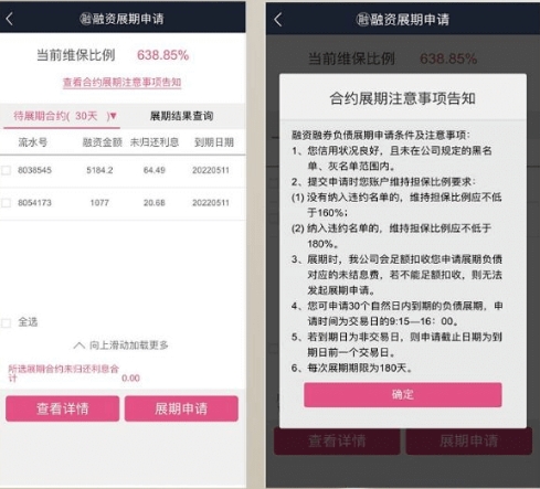【融资融券】-【融资展期】/【融券展期】是指投资者在符合条件的情况下可向证券公司申请融资负债合约展期和融券负债合约展期(以融资展期为例)。