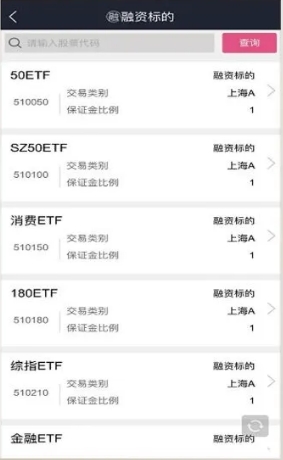 【融资融券】-【融资标的】可查询东海证券支持融资买入的标的证券清单以及每只证券的融资保证金比例。