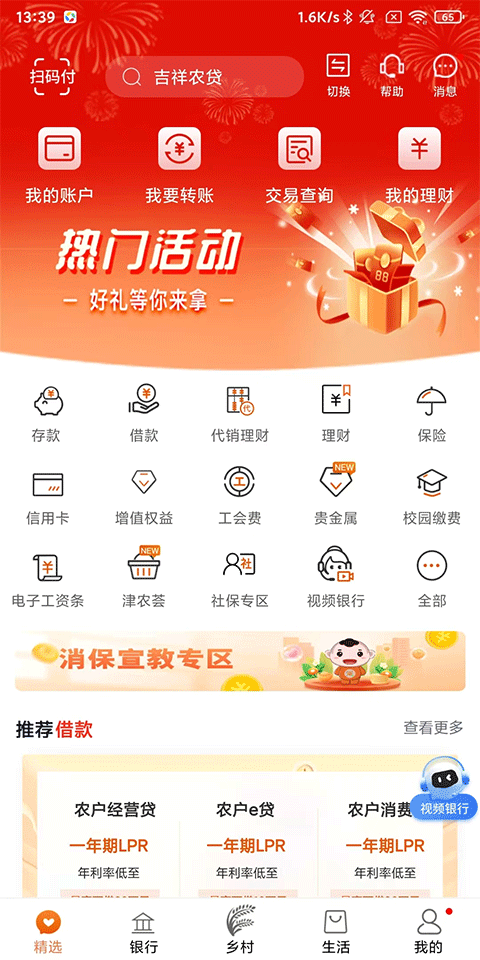 提供包括转账、存款、贷款、理财、基金、信用卡、交易明细查询、账户管理、无卡取款、网点查询、短信签约等功能线上化自助服务。