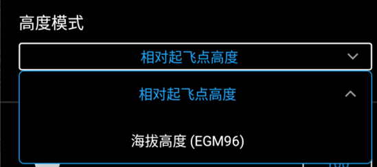 高度模式包括相对起飞点高度和海拔高度(EGM96)两个选项,此选项决定了航线高度的起算面。