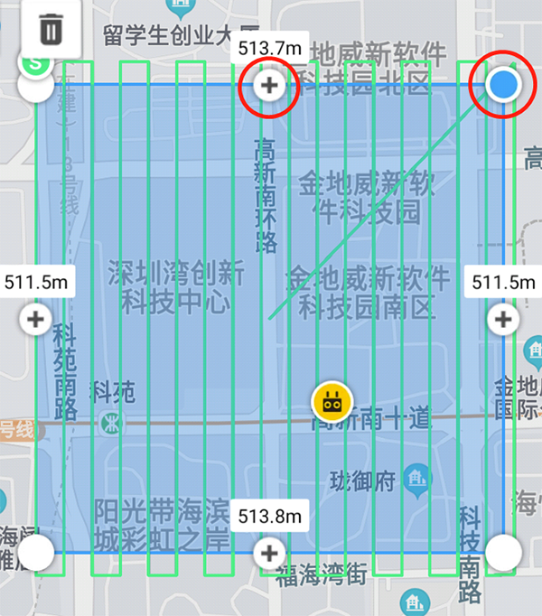通过拖动生成的边界点可调整测绘区域范围,也可拖动边界点间的+号添加边界点。