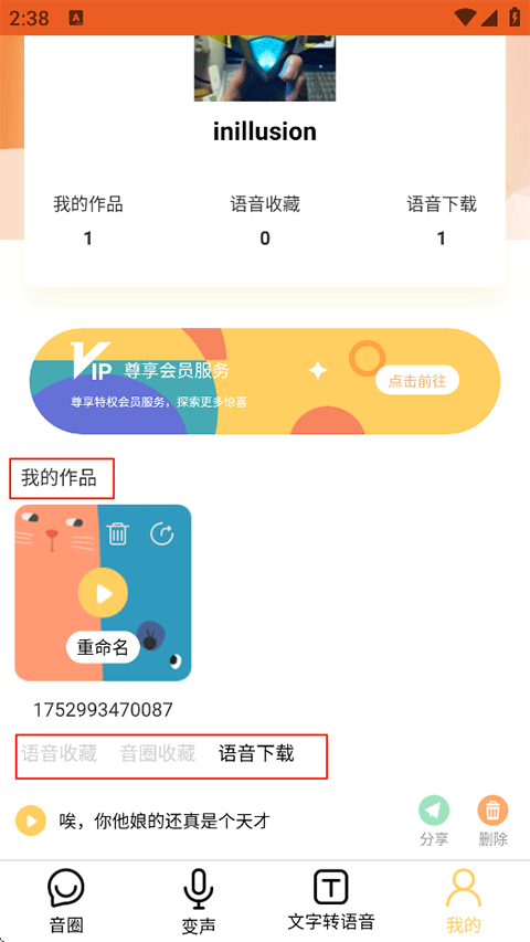 6、最后制作、收藏以及下载的语音作品可以在登录后我的页面查看。