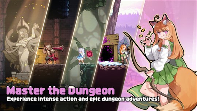 这款游戏看起来挺有意思的,是一个像素风格的地牢冒险游戏,玩法有点像横版动作RPG。你扮演一个地牢骑士,要去闯关打怪物,还能收集武器装备和宝藏,解锁剧情任务。游戏里有各种各样的技能和神器,可以用来提升战斗力,还有好看的像素风角色服装。