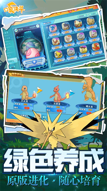 战斗系统100%还原原作,采用轻松的进化方式,不需要大量收集各种资源去进行升星和突破,大部分精灵在战斗中即可自动实现超进化;