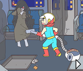 9、使用吸尘器,把座椅上的女鬼吸进去,获得座位,通关