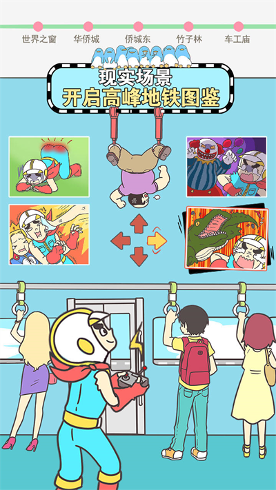 这款叫《地铁上抢座是不可能的》的游戏听起来就很有意思,玩法简单又魔性,美术风格也很搞笑,完全是一副无厘头的画风。游戏中你需要通过各种脑洞大开的方式在地铁上抢座占座,过程中还会触发各种奇怪事件,比如出现小丑吓人、撸猫被挠、还有gay大叔突然抱你,这些沙雕情节让人忍俊不禁。