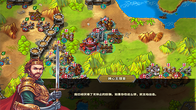 在销售市场中貿易,防御王国的边境线,击败进犯的敌方名将;