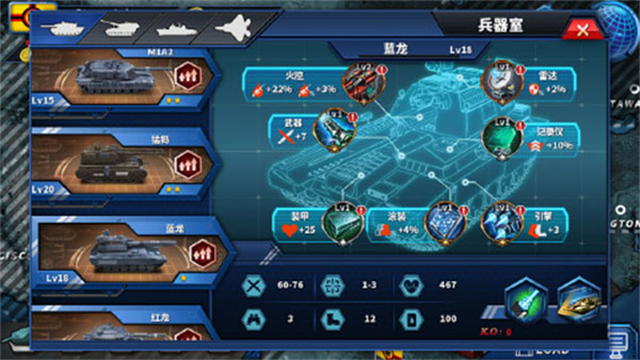 (4)南美:用10000金币购买铜雷达、铜火控、银装甲和银燃烧弹;用30勋章购买银雷达、银火控、金装甲和金燃烧弹。