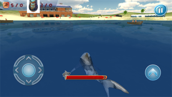 4、左侧为方向按钮,你可以控制鲨鱼的前进方向,右侧可以进行冲刺;