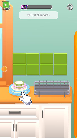 1、游戏玩法简单,按照关卡要求完成任务即可,比如进入游戏第一关就是将物品放置在正确的位置,点击移动餐具重新摆放;