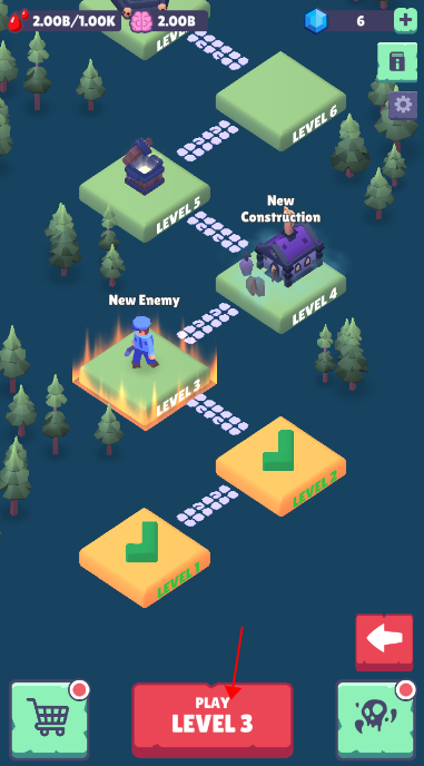 1、打开下载好的游戏,选择关卡,点击下方红色按钮开始游戏。