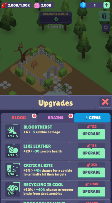 4、杀掉城市中的人类可以获取他们的血夜、骨骼、大脑,用这些可以提升僵尸的实力。