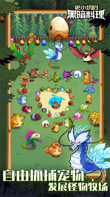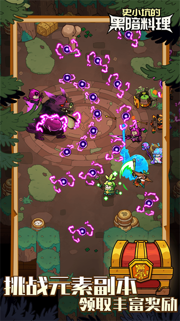 史小坑的黑暗料理是一款脑洞大开的冒险解谜手游,它在“探险+战斗+烹饪”的机制基础上融入了史小坑式的黑色幽默,营造出一种前所未有的轻松氛围。画风手绘诙谐,角色设定独特,战斗过程轻策略但不繁琐,玩法上融合了佣兵养成、食材收集、料理合成等要素,充满解压趣味。玩家需要帮助史小坑在这个充满食物的小岛上,寻找各种食材,途中你会遇到各种奇葩的食物怪兽,比如爱听音乐的西红柿、跑得比牛翔还快的香肠、会爆炸的小饭团等等,你需要找到合适的厨具,搜集这些食材,并将它们制作成特级黑暗料理,以集齐传说中的黑暗食谱。