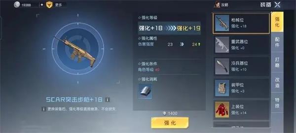 区别于配件,强化适用于所有装备,包括近战武器和防具,同时玩法也比较单纯,获取材料点击强化即可。值得注意的是,强化不同的部件会获得不同的效果,比如强化主武器会增加伤害强度,而强化近战武器则会提升技能强度。而且,强化是可以无损继承的,玩家在更换任何装备之后,强化都会自动转移到新装备上。