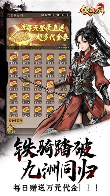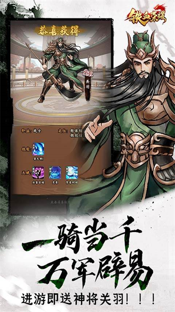 铁血荣耀(0.05折每日送代充版)是一款全新三国水墨开箱手游 ,游戏玩法简单,指尖开箱,挂机就能白嫖各类福利,还有全民无门槛超值福利免费相送,助力你快速渡过新手期!游戏内的所有三国武将均可招募,玩家可以将他们收入麾下,并带着自己组建好的武将去征战沙场。铁血荣耀游戏内还设有羁绊玩法,万千羁绊等你来解锁,心动的小伙伴快来下载,轻松打造不败军团,创造你的三国史诗!