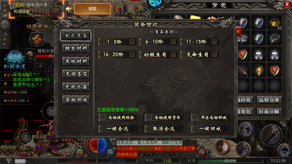 5、刷到的多余装备不用怕浪费,游戏拥有在线回收获得元宝