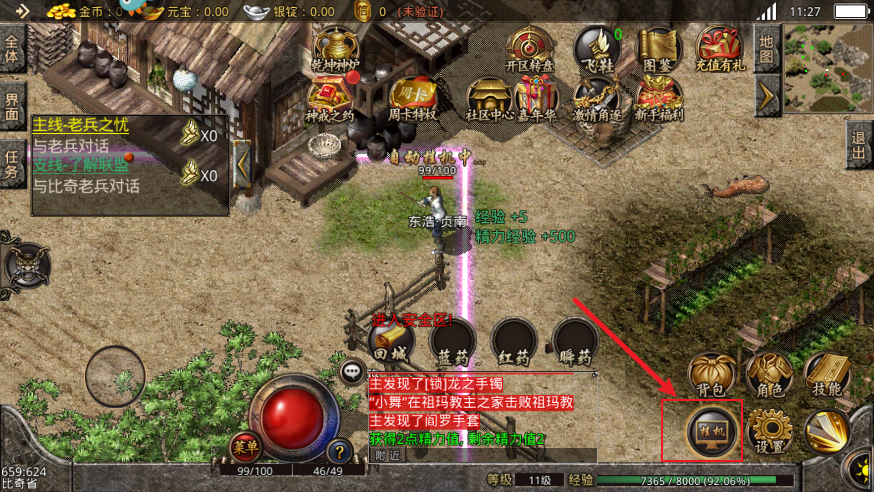 6、当你玩累了的时候也可以点击右下角的挂机按钮,让系统自动帮你刷怪。